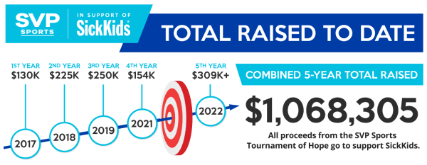 Since our inaugural tournament in 2017, together, with the support and generosity of our sponsors and attendees, we have raised $759,000 to benefit SickKids and the future of children’s health care. This year, our goal is to raise $241,000 and reach a milestone of $1,000,000!