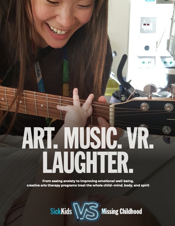 More than 14,000 patients are admitted to SickKids each year, and the hospital performs the most paediatric surgeries in Canada. Over the past 10 years, Sick Kids' Creative Arts Therapy programs have eased the toll of illness and recovery by mindfully nurturing a safe environment for emotional expression, empowerment, and social interaction. SickKids provides patients and families comfort when they need it most.